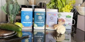Un batido delicioso hecho con leche de coco, yogur de coco, mango y banano congelada con la proteina Clean Keto de Sunwarrior.